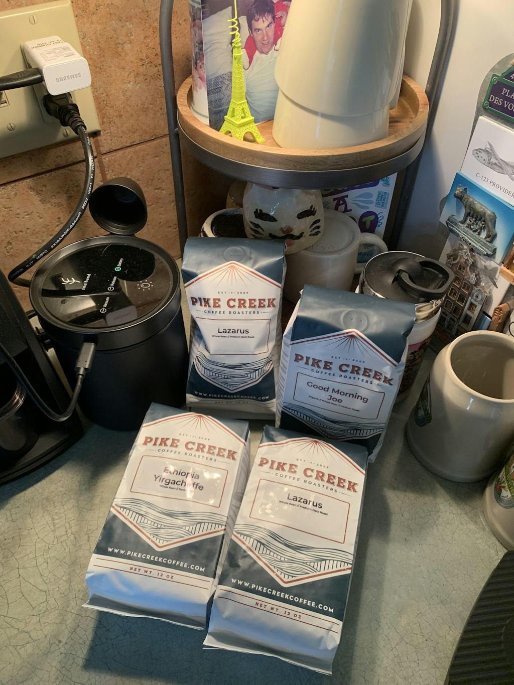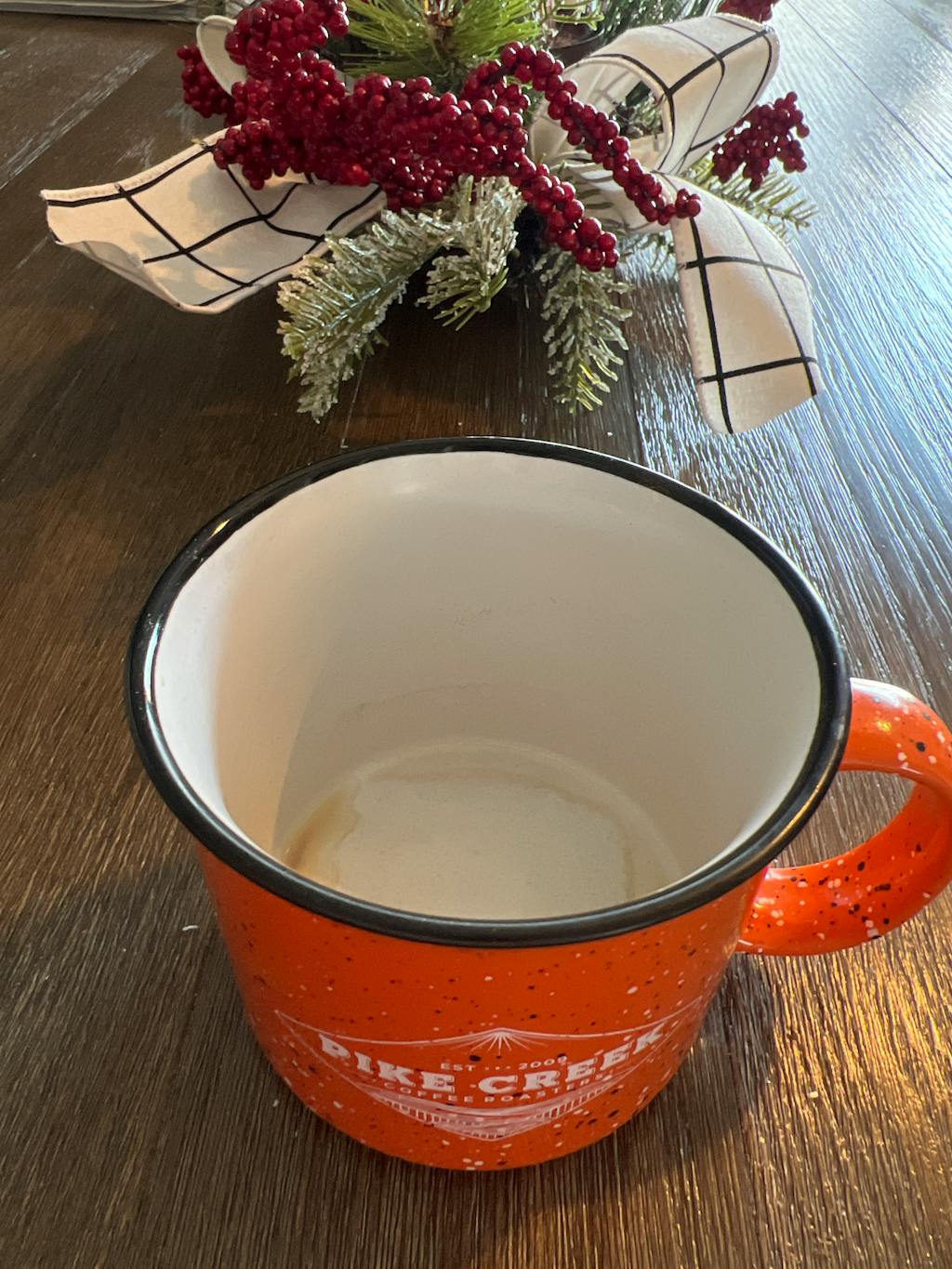 My Pike Creek Coffee Roasters mug has been awesome! It’s plenty big and easily holds 12-14 ozs of Pike Creek coffee plus it looks fantastic. In fact, I’ve received several compliments on its appearance which gave me the opportunity to cross sell your coffee! 😁